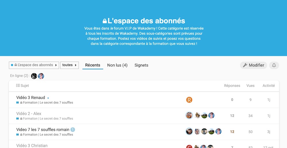 Il suffit de vous connecter à Wakademy pour visionner les vidéos en ligne.